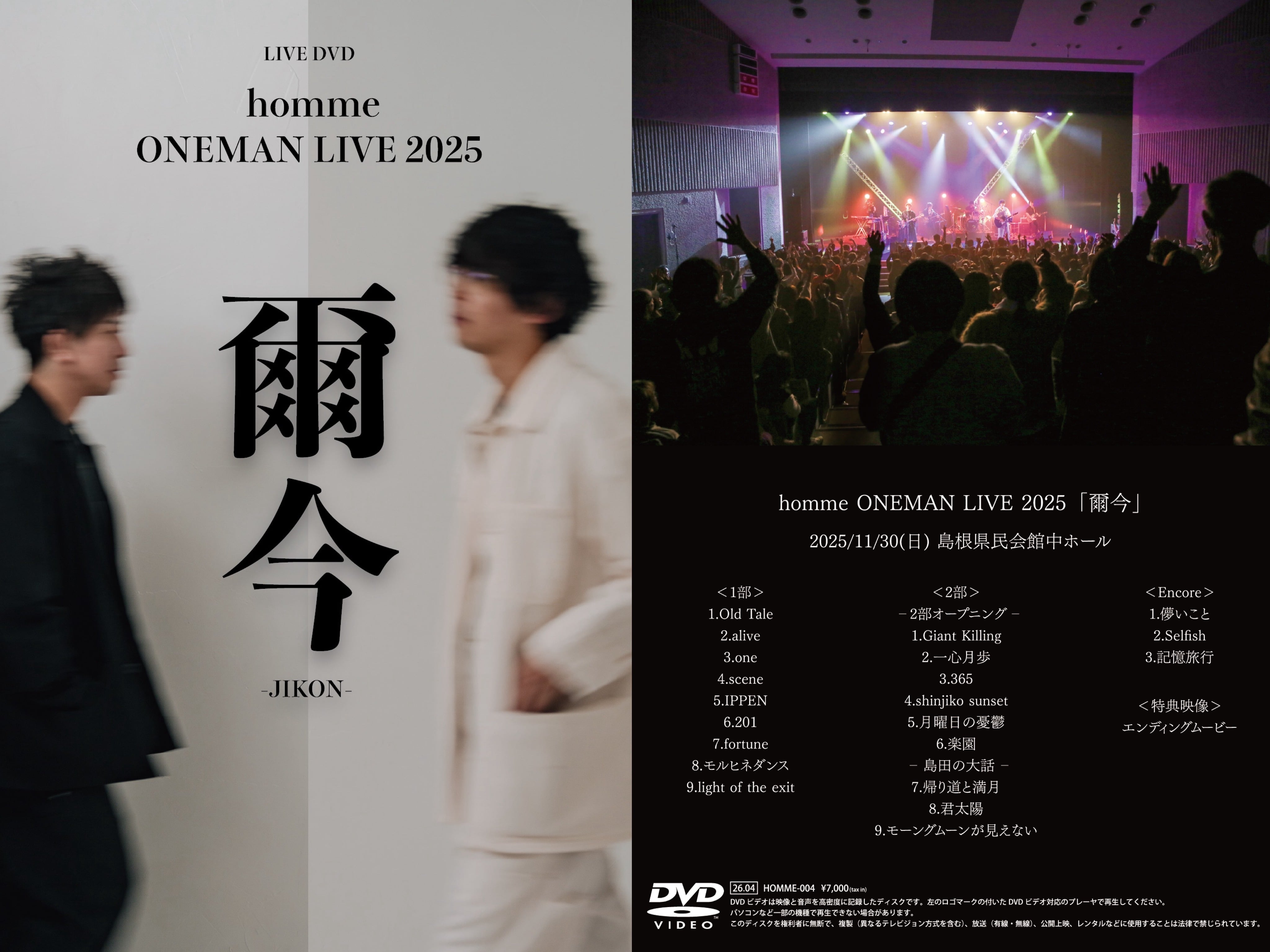 【プレミアムパック】homme ONEMAN LIVE 2025「爾今」【4/28まで先行注文受付中】
